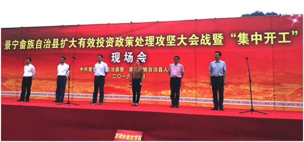2016年5月25日下午,景寧畬族自治縣擴(kuò)大有效投資政策處理攻堅(jiān)大會戰(zhàn)暨“集中開工”現(xiàn)場會,在我公司中標(biāo)承建的景寧縣中心糧庫遷建工程現(xiàn)場舉行。景寧縣政府領(lǐng)導(dǎo),職能部門、工程所在地鄉(xiāng)鎮(zhèn)領(lǐng)導(dǎo),建設(shè)、施工和監(jiān)理單位代表,參加了本次現(xiàn)場會。景寧縣中心糧庫遷建工程作為集中開工的主要工程項(xiàng)目,我公司副總經(jīng)理譚俊勇代表我公司作施工單位表態(tài)發(fā)言。