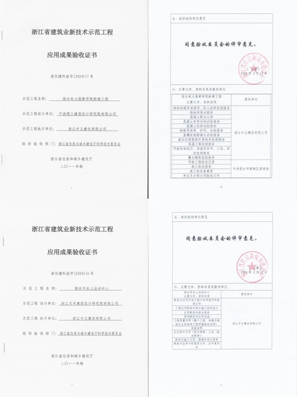近日,中立建設(shè)承建的“麗水電大蓮都學(xué)院新建工程”和“麗水市水上運(yùn)動(dòng)中心”,通過(guò)浙江省住房和城鄉(xiāng)建設(shè)廳科學(xué)技術(shù)委員會(huì)組織的驗(yàn)收組驗(yàn)收,兩個(gè)項(xiàng)目獲“浙江省建筑業(yè)新技術(shù)應(yīng)用示范工程”。
