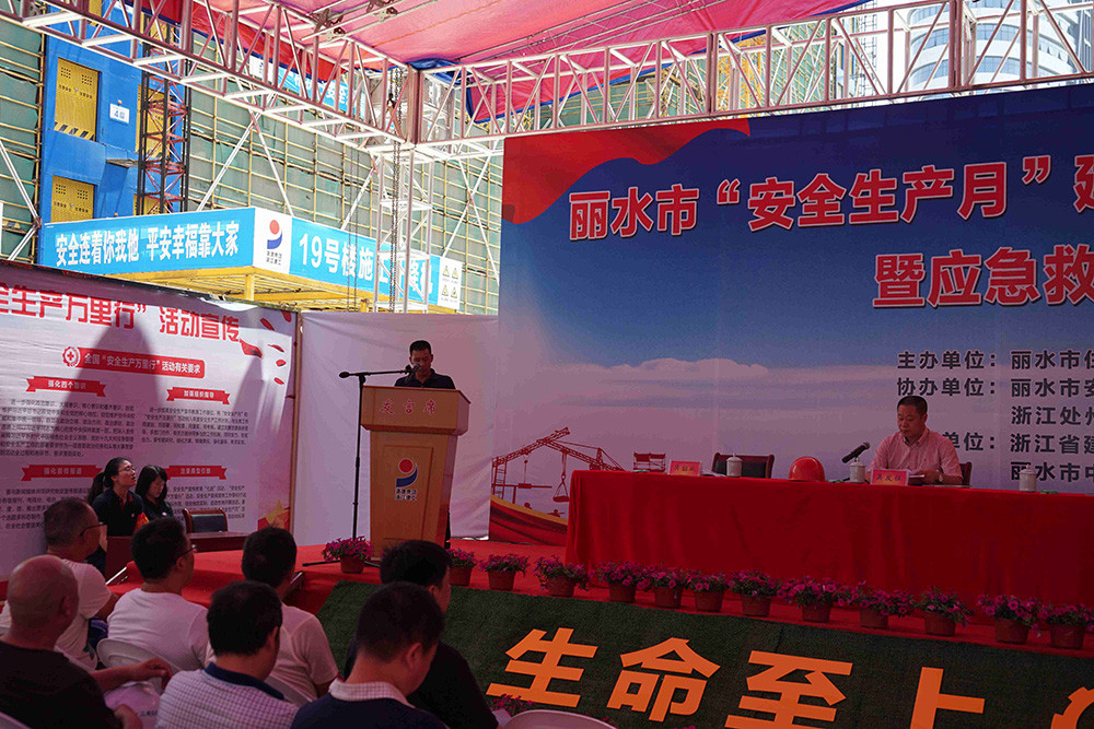 6月15日上午,麗水市住房和城鄉(xiāng)建設局召開麗水市“安全生產(chǎn)月”建筑施工安全質量工作現(xiàn)場會暨應急救援演練觀摩會,我公司承建的麗水市人民醫(yī)院東城院區(qū)項目部為本次會議的觀摩現(xiàn)場、公司副總經(jīng)理吳韶斌代表施工單位在大會上作交流發(fā)言。