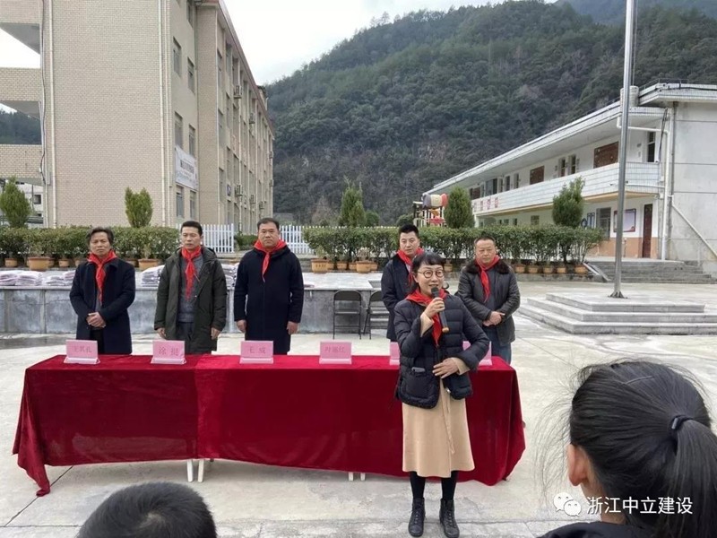 新年伊始,恰逢臘八,浙江中立建設(shè)有限公司帶著81套校服走進(jìn)遂昌大山深處的黃沙腰小學(xué),給大山里的孩子送去冬日里的溫暖。公司副總經(jīng)理葉麗紅、項(xiàng)目負(fù)責(zé)人曹亮、黃沙腰鎮(zhèn)鎮(zhèn)長(zhǎng)毛威、黃沙腰鎮(zhèn)人大主席涂挺、遂昌縣教育局黨組成員王其孔、黃沙腰小學(xué)校長(zhǎng)葉益明出席了捐贈(zèng)儀式。在捐贈(zèng)儀式上葉麗紅希望同學(xué)們刻苦學(xué)習(xí),立志成才,不負(fù)韶華,回報(bào)社會(huì),回報(bào)祖國(guó)。葉校長(zhǎng)致辭對(duì)捐贈(zèng)校服的善舉表述了衷心的感謝。校優(yōu)秀少先隊(duì)員王夢(mèng)媛致感謝詞:“叔叔阿姨們,請(qǐng)相信我們,我們會(huì)努力學(xué)習(xí),去創(chuàng)造一片屬于自己的絢麗天空;我們會(huì)努力學(xué)習(xí),早日成為國(guó)家的棟梁,為家鄉(xiāng)建設(shè)貢獻(xiàn)自己的力量。我們堅(jiān)信一定不會(huì)讓你們失望!”
