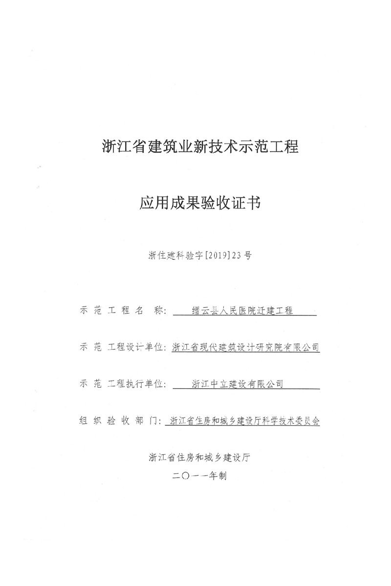我公司承建的“縉云縣人民醫(yī)院遷建工程”通過了浙江省建筑業(yè)新技術應用示范工程驗收。該工程是我公司也是麗水市本地企業(yè)首次榮獲浙江省建筑業(yè)新技術應用示范工程,取得了較好的經(jīng)濟效益和社會效益。通過開展技術創(chuàng)新活動是我公司提升企業(yè)知名度,提高整體技術管理水平,鍛煉隊伍培養(yǎng)人才的重要途徑。