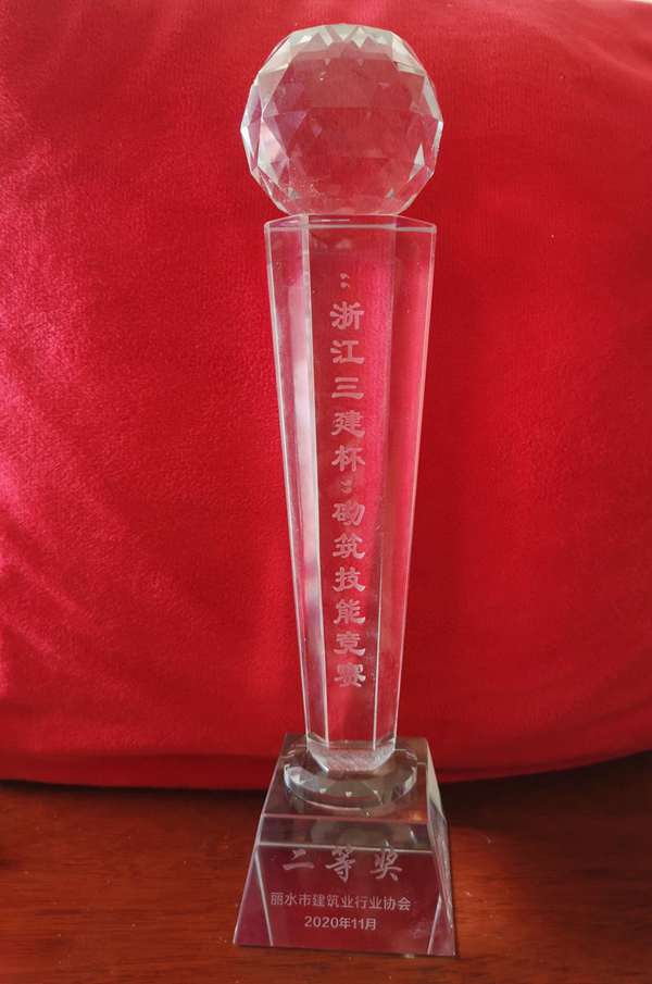 參賽代表需在1.5小時(shí)內(nèi)完成長1.5米、高1.2米的帶預(yù)留洞口和馬牙槎的砌體,通過緊張、激烈的競賽,最終裁判通過垂直度、灰縫寬度、平整度等現(xiàn)場實(shí)測實(shí)量和砌體構(gòu)造及觀感質(zhì)量等綜合評分,我公司代表隊(duì)獲得了第二名的好成績。