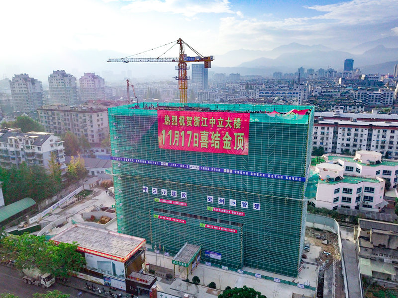 11月17日上午,秋高氣爽、風(fēng)和日麗,在一派喜慶熱烈的氛圍中,浙江中立建設(shè)有限公司自主建設(shè)的中立大樓喜結(jié)金頂。
